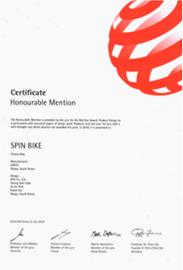 Red-dot Award Product Design 수상 (Spin Bike) 2018